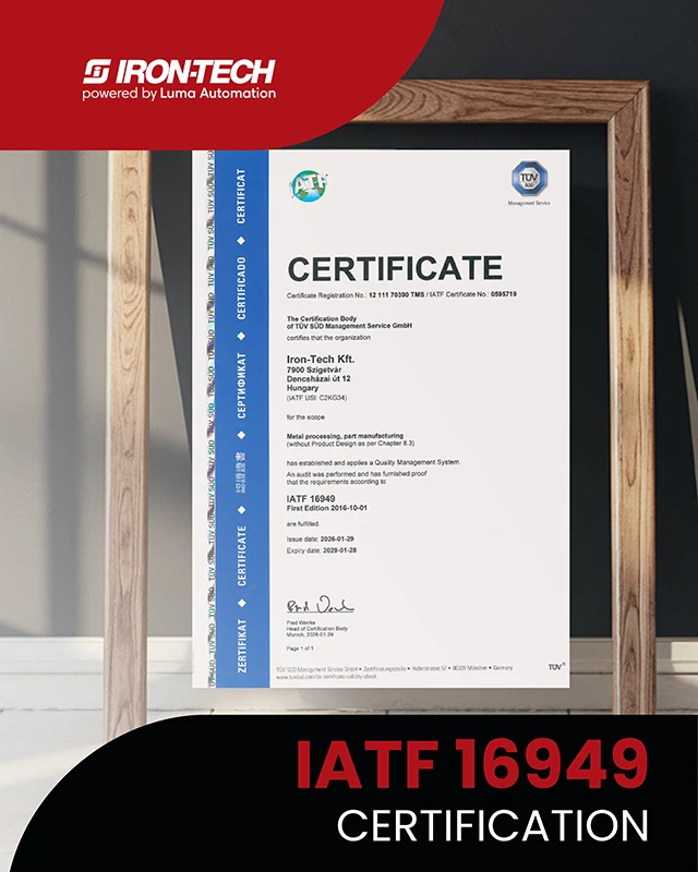 IATF 16949 certification strengthens our position as a partner for demanding automotive clients. We are building solid foundations for further growth and the delivery of ambitious projects within the Luma Automation Group.